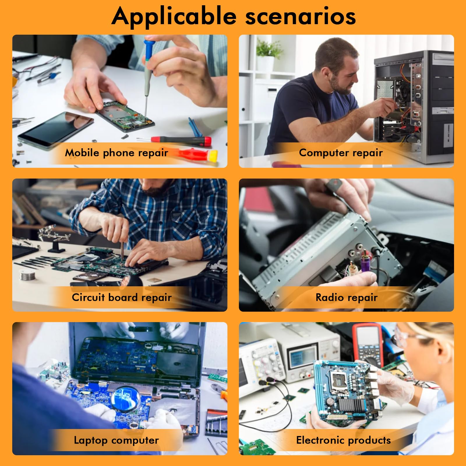 - 【Multi-Functional】: The electric soldering tool Includes 5 soldering tips, an 8-in-1 screwdriver, and additional versatile tools to meet diverse soldering needs. Suitable for smartphones, computers, circuit boards, and other electronic devices