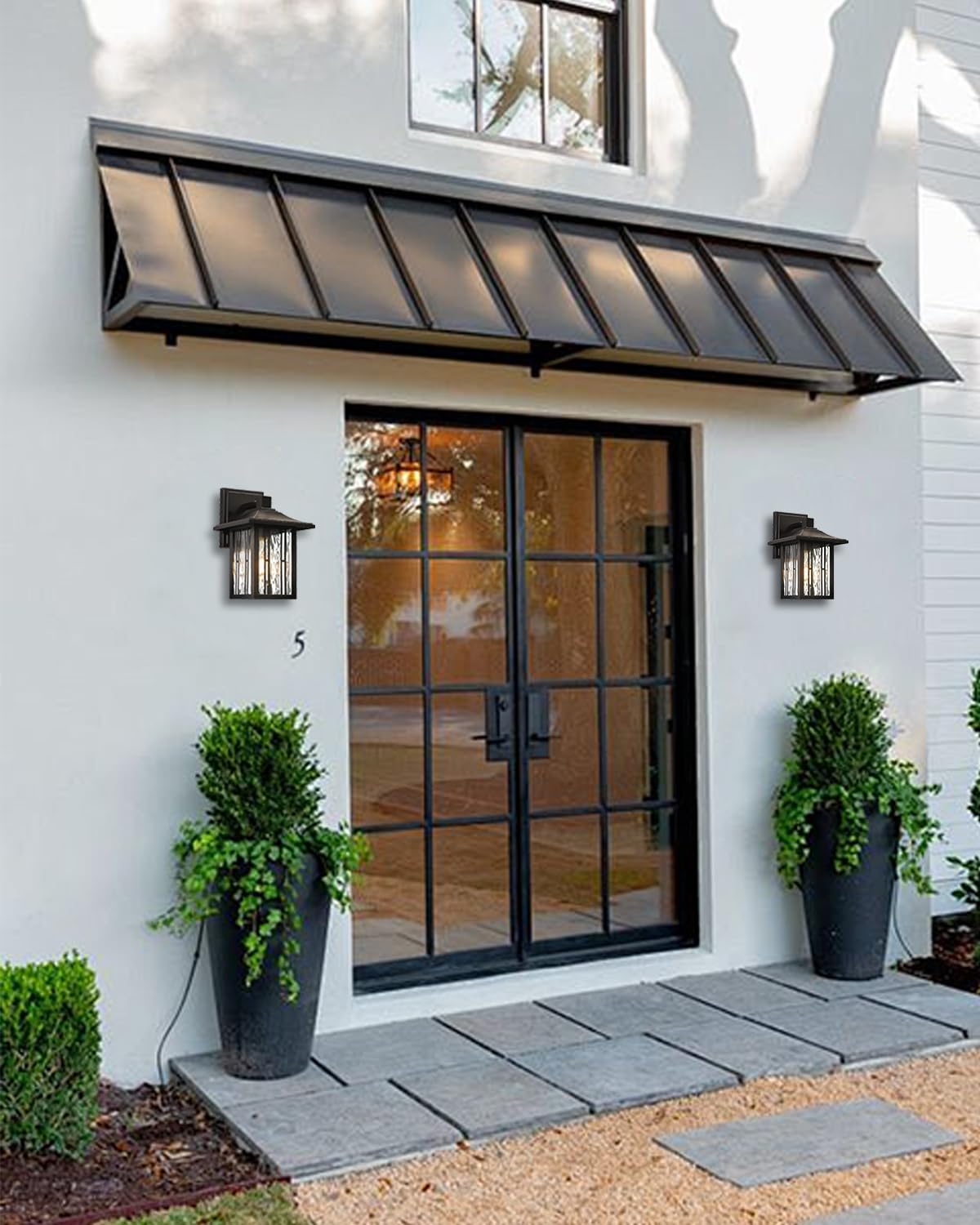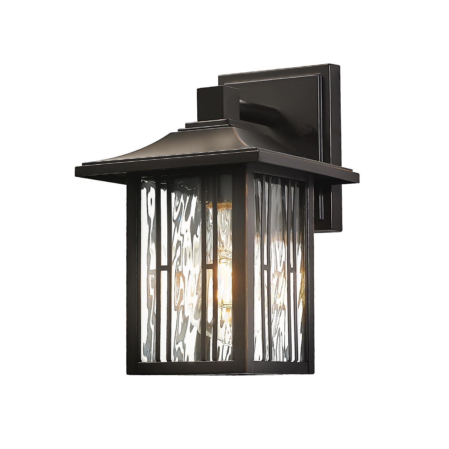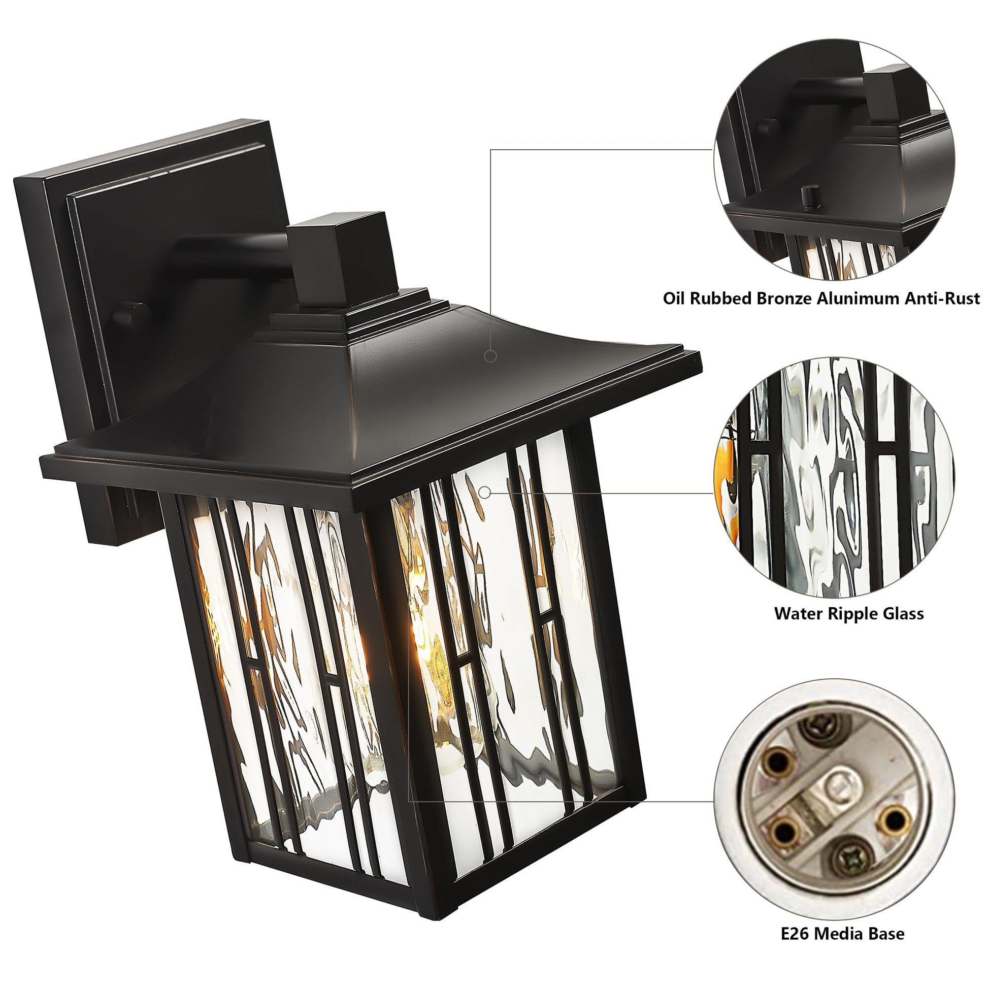 OUPAVOCS Modern Outdoor Wall Lights, Exterior Porch Lights Fixture Wall Mount, Waterproof Outside Wall Sconce with Water Ripple Glass, Oil Rubbed Bronze Patio Wall Lantern for Garage, House, 1 Pack