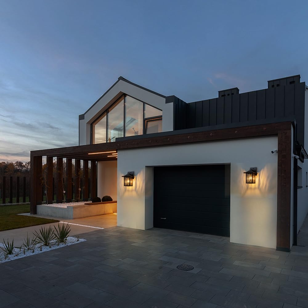 OUPAVOCS Outdoor Wall Lights with Motion Sensor, Dusk to Dawn Porch Light Sconce, Mate Black Exterior Wall Lantern with Water Glass, Patio Lighting Fixtures Wall Mount for House, Set of 2