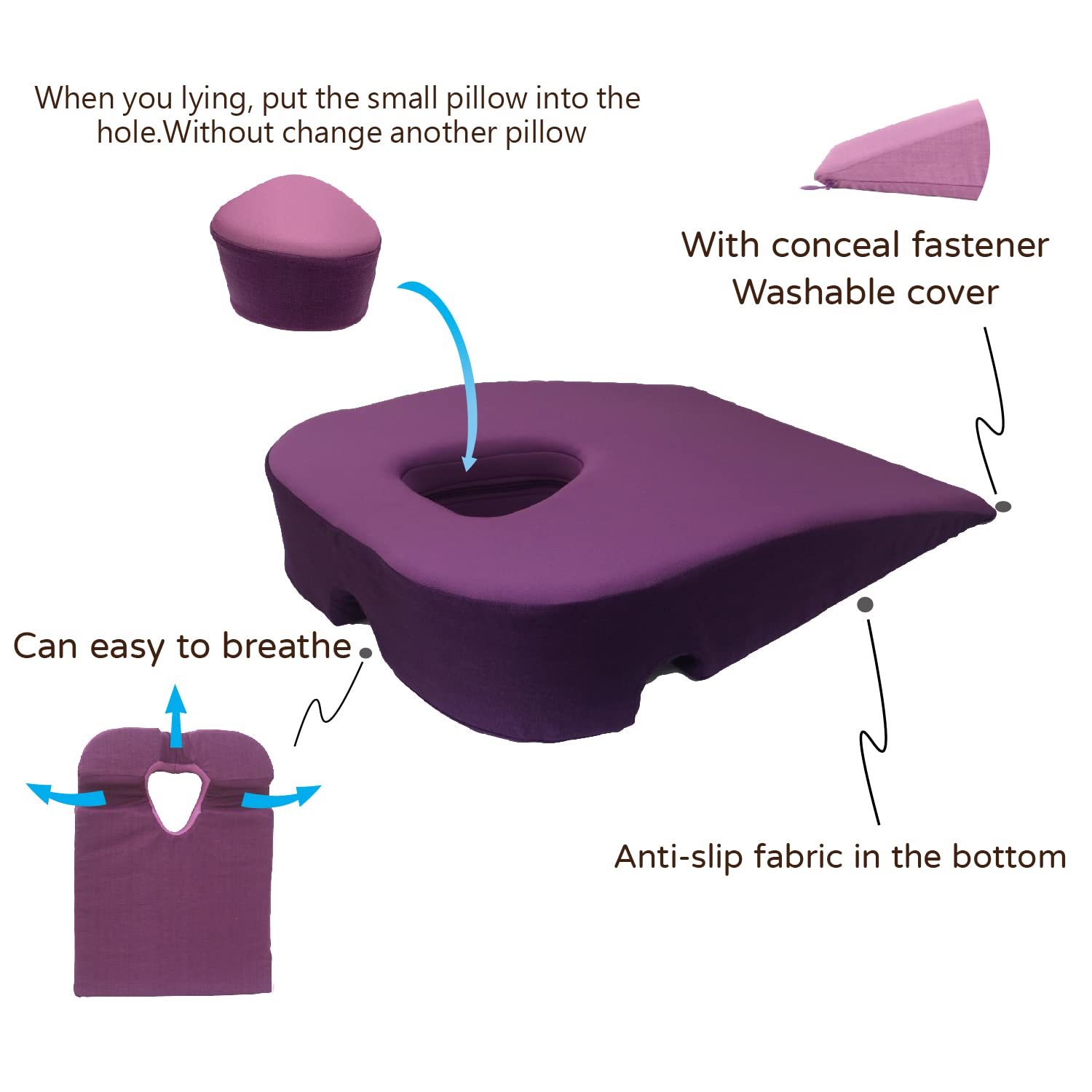 - Patent and sweet design - Underside holes designed for increased breathability.And the design of the concealed zipper on the pillowcase makes it easy to remove and wash, as well as hygienic.( Machine washable, but it is recommended to put it in a laundry bag first.)