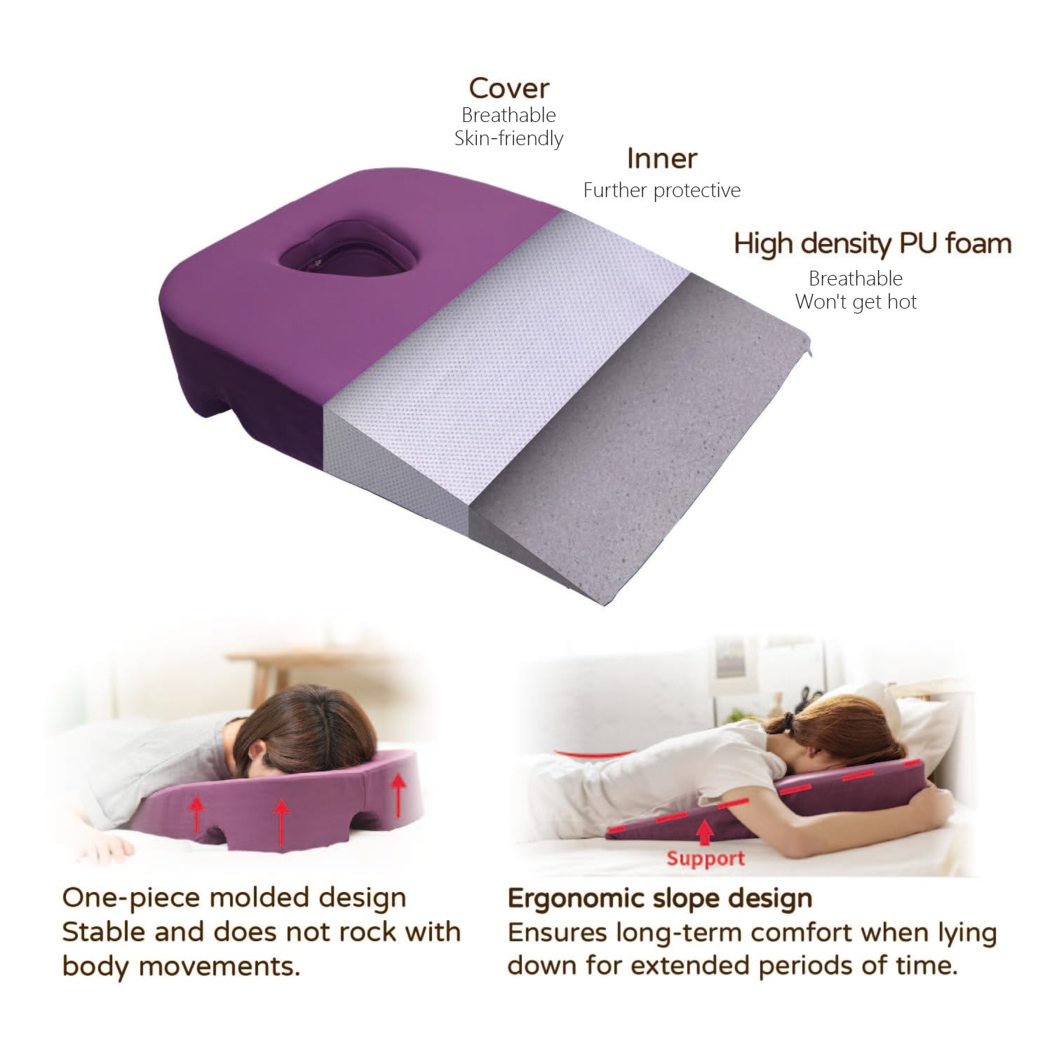 - MULTI FUNCTIONAL -Face down sleeping , side sleeping , back sleeping and massage pillow.This is probably the most multifunctional prone sleeping pillow available. It can be used anywhere, not just on the bed but also on the sofa. You can even take it with you when traveling, allowing you to massage your family members wherever you go.