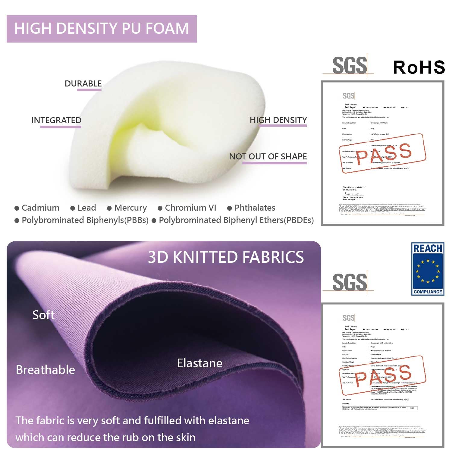 - PREMIUM MATERIAL : high-density and high-elasticity foam, and a skin-friendly cover. Both have passed SGS and EU regulatory standards