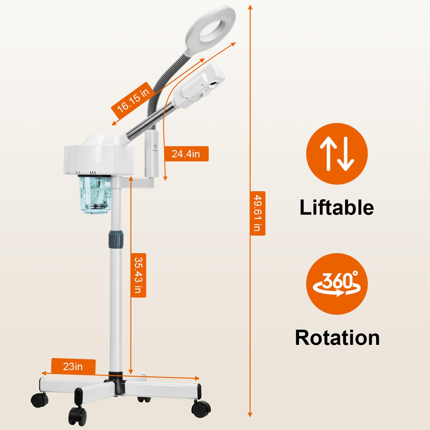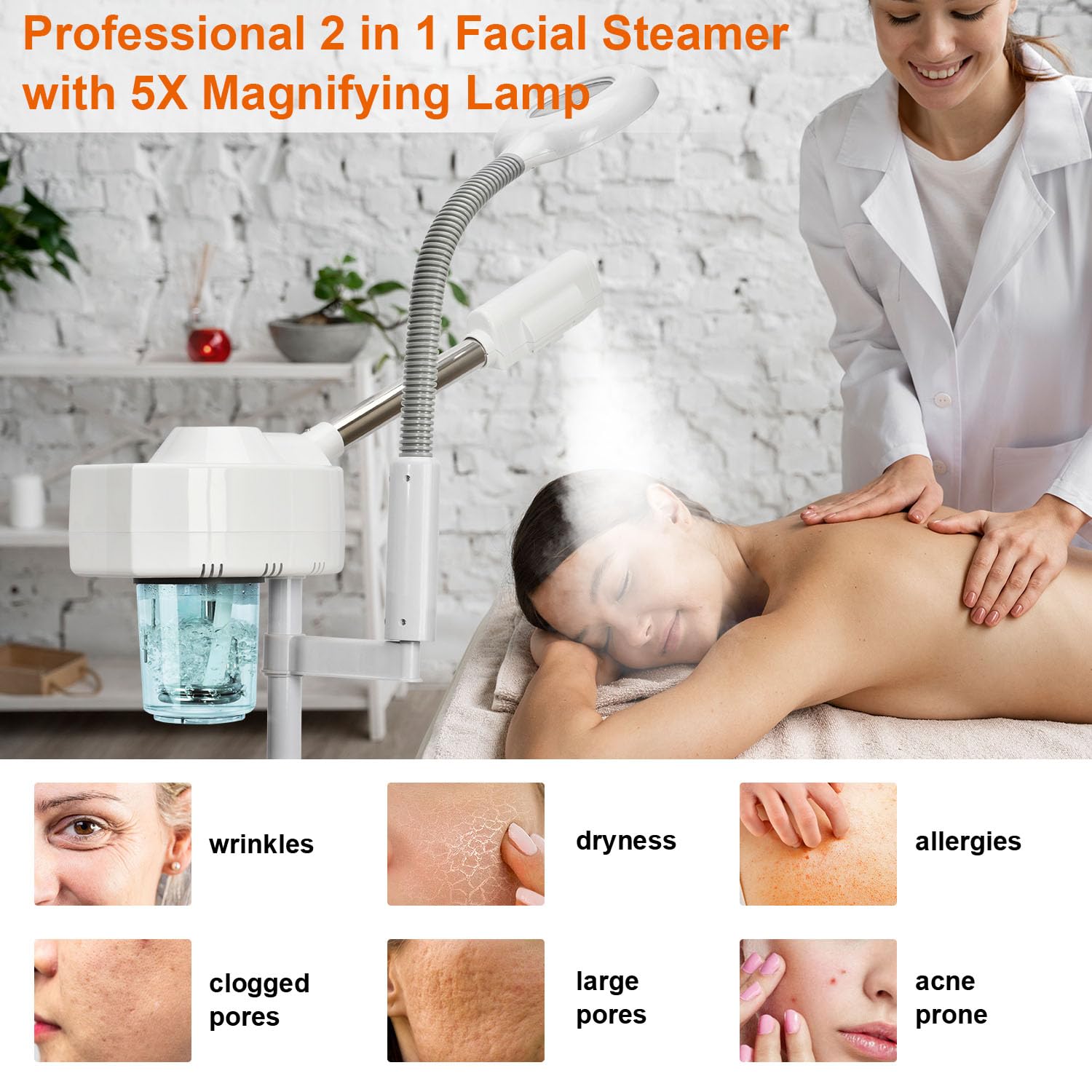 Professional Facial Steamer, 2 in 1 Facial Steamer with 5X Magnifying Lamp/Adjustable Hot Mist Nozzle, Facial Steamers for Home Beauty Salon Spa, Face Steamer for Esthetician