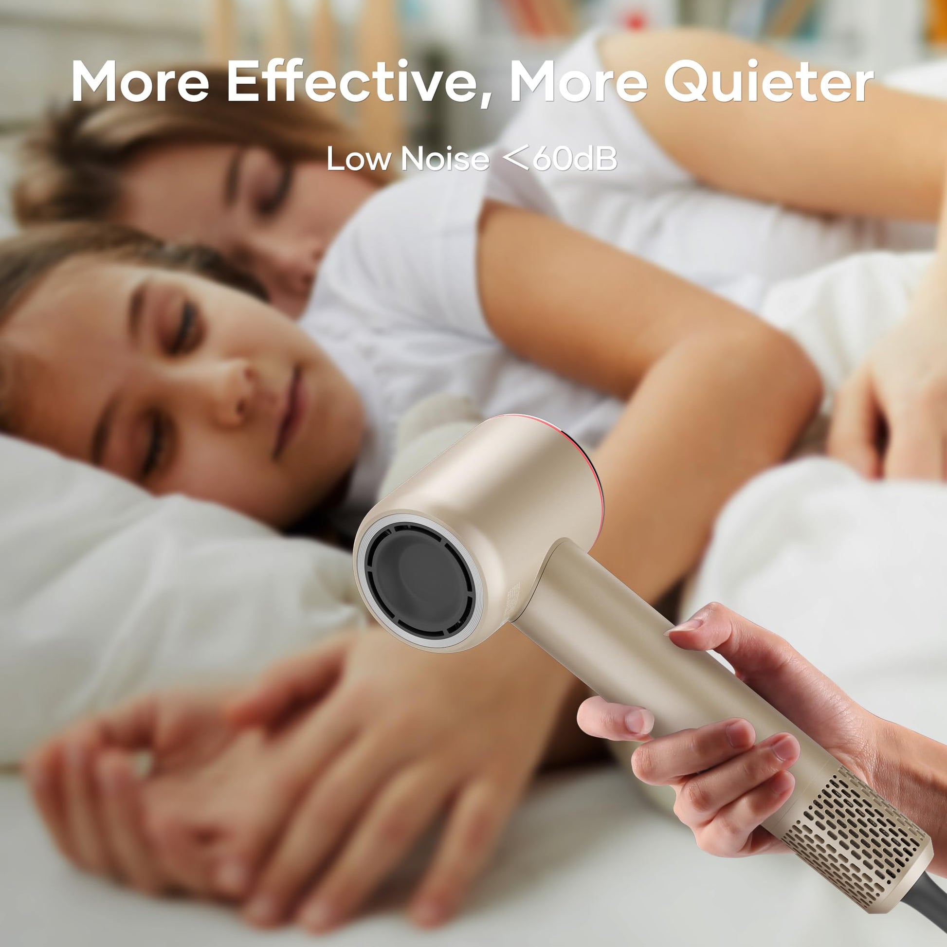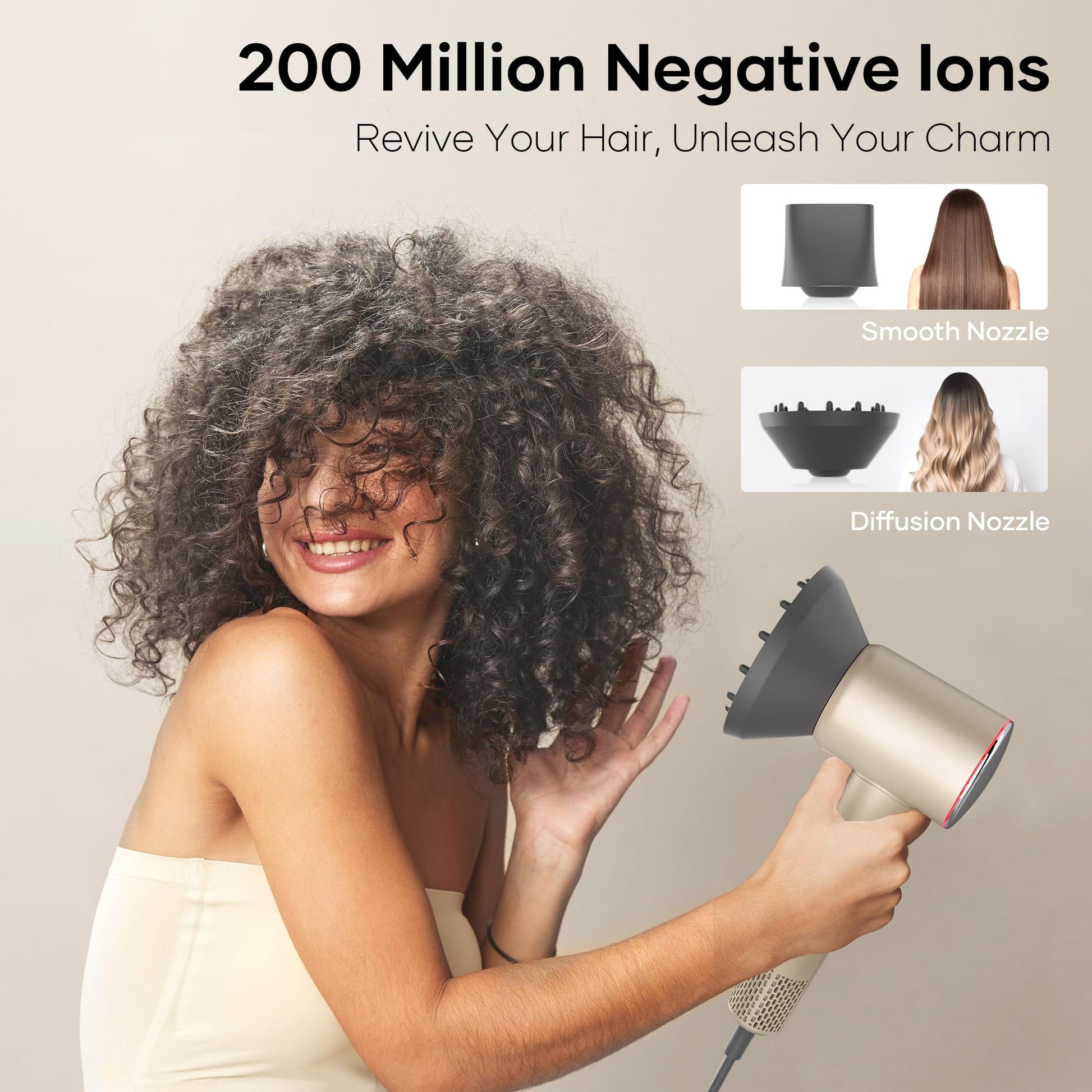 Professional Hair Dryer, 200 Million Negative Ionic Blow Dryer with 110000 RPM Motor, 1500W High-Speed HairDryer with Magnetic Nozzle & Diffuser for Salon, Home, Travel, Perfect for Gifts Golden
