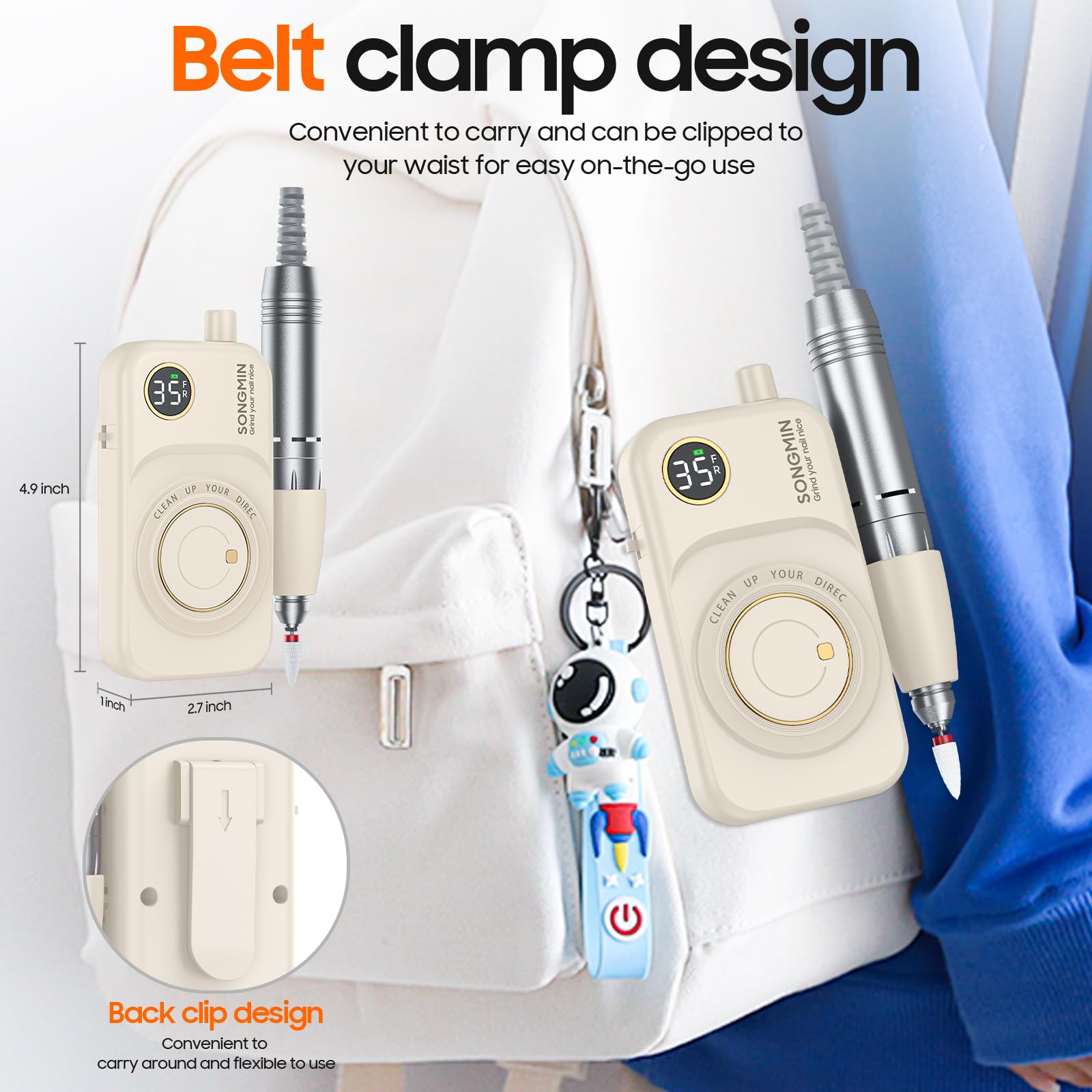 Professional Nail Drill 35000 RPM,SONGMIN Portable Cordless Efile with Bits Kit for Acrylic Nails Gel Polishing Removing,Rechargeable Electric Nail File Machine for Manicure,Pedicure Salon Home,White