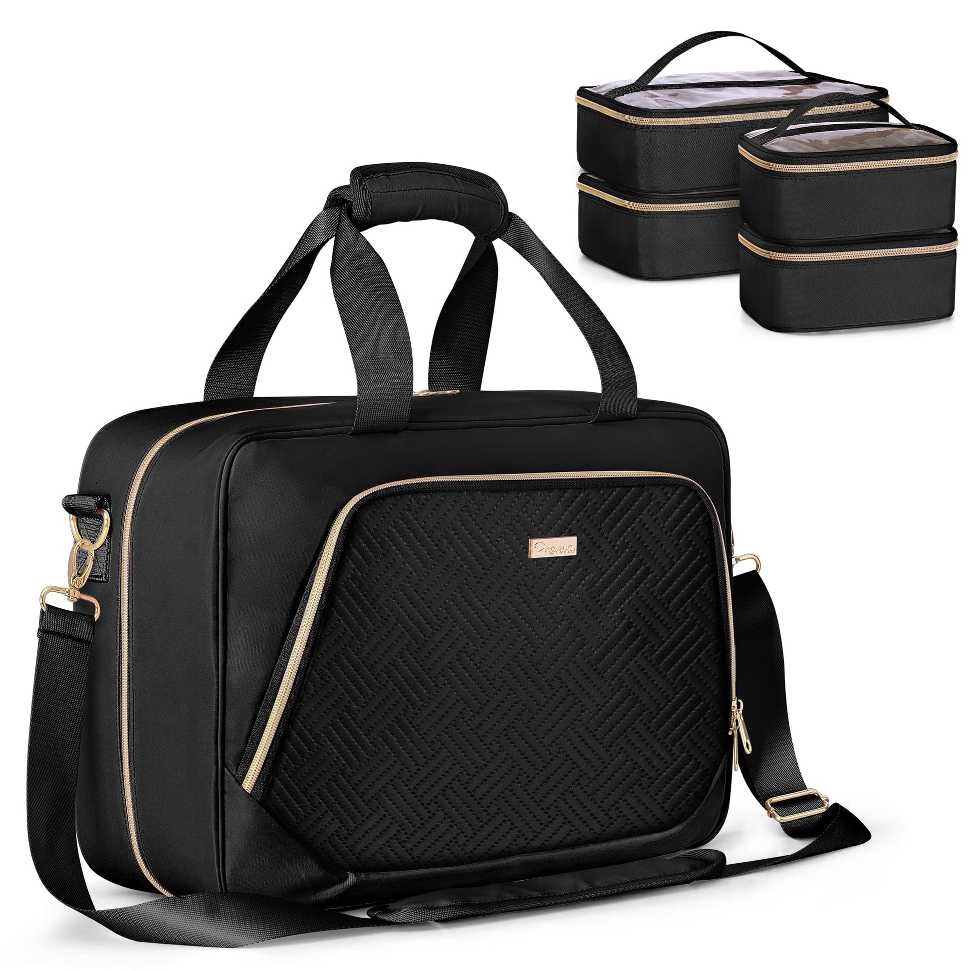Prokva Large Makeup Bag with 4 Detachable Cosmetic Cases, Professional Make up Organizer Bag with Makeup Brushes Storage Section and Hair Tools Pocket, Black (Empty Bag Only)