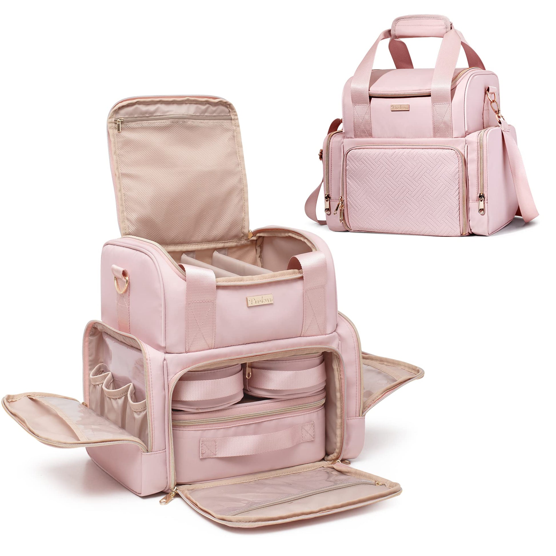 - 【3 CARRYING OPTIONS】 Wrapped top handles, adjustable & padded shoulder straps and back luggage strap makes it convenient to carrying the makeup organizer bag to party, wedding, fashion show, bathroom, camp or on traveling.