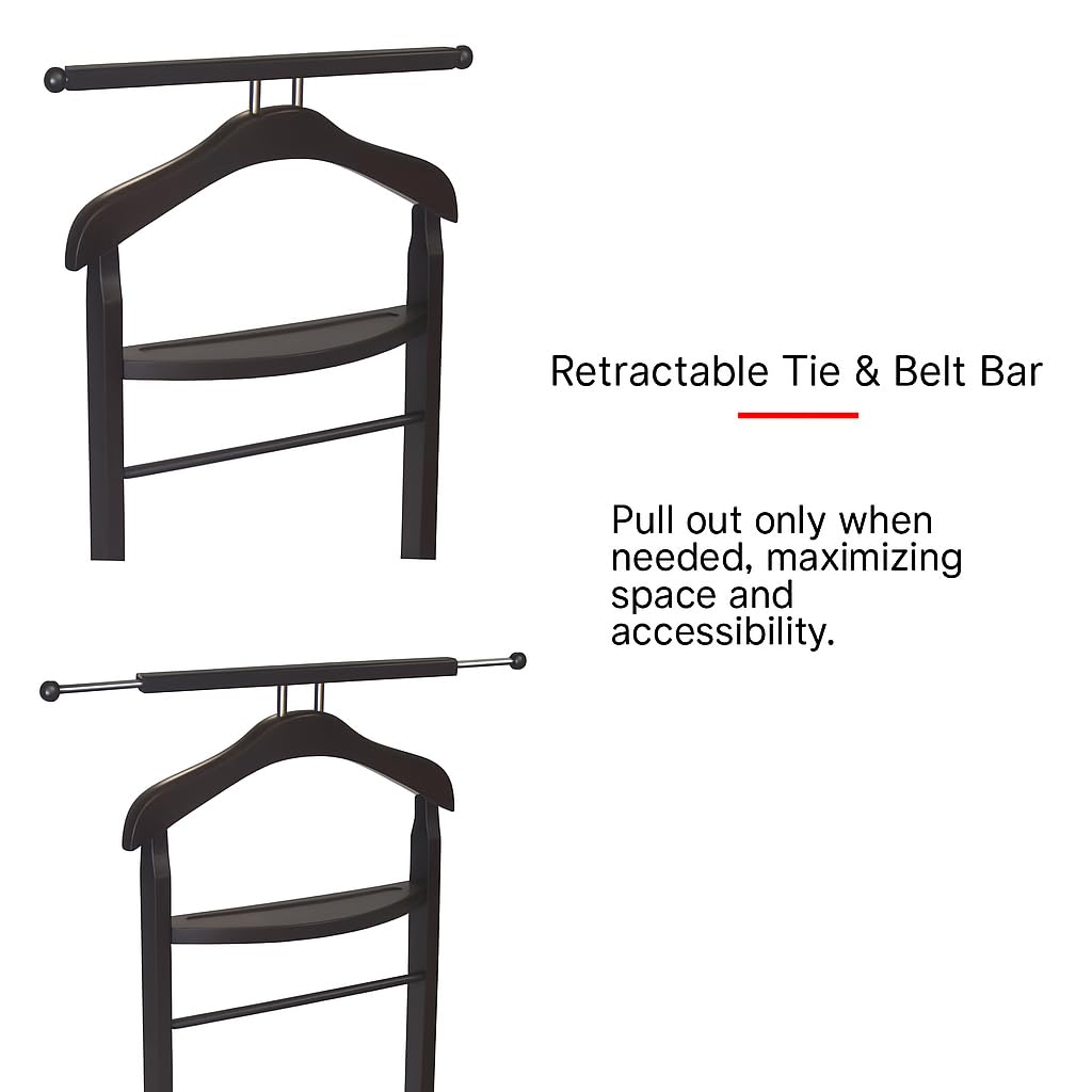 - Tie bar on top can be used for 2Nd trouser and be extended to hang Tie and belt