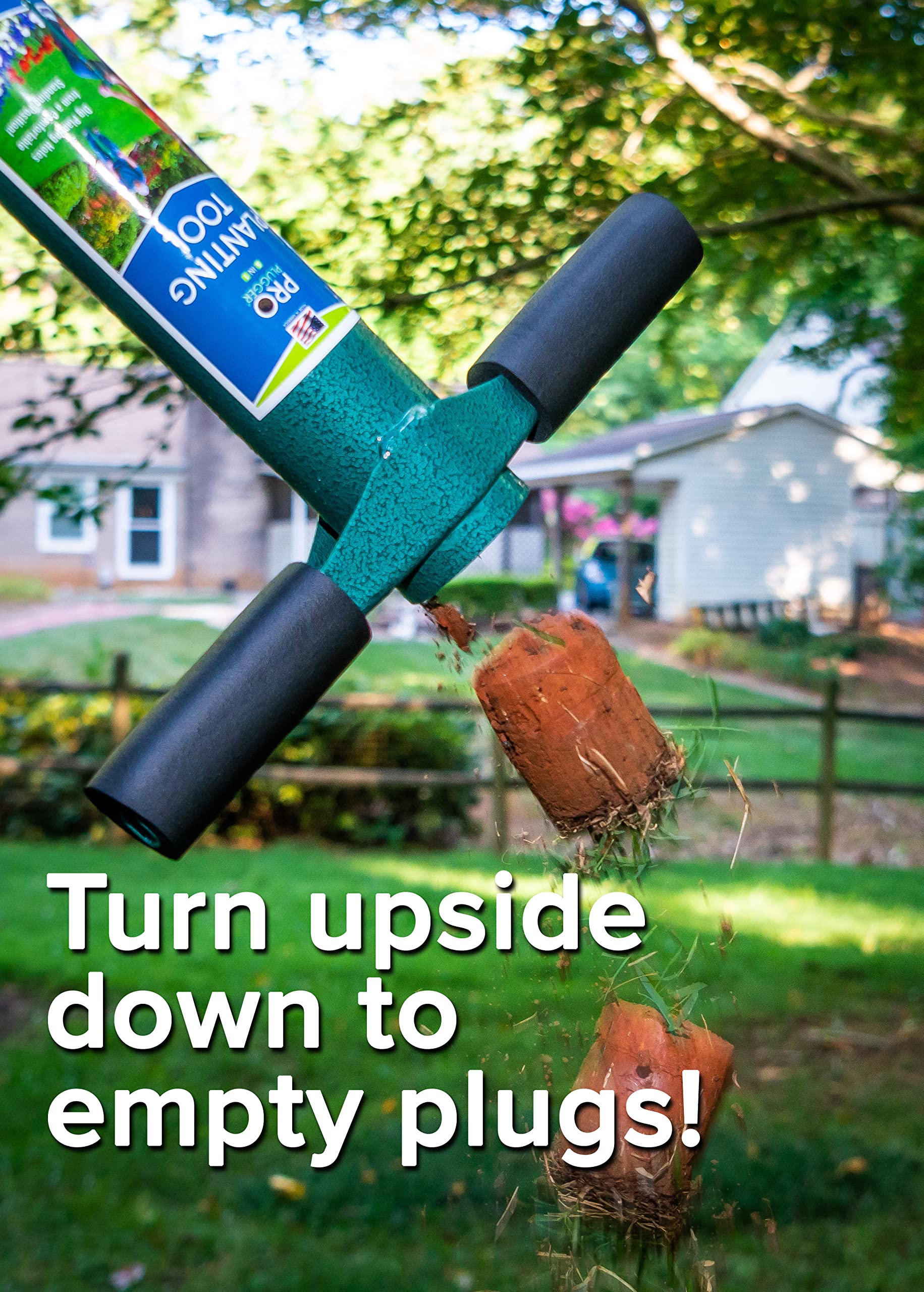 Details: The ProPlugger 5-IN-1 Planting Tool is a tool that won’t collect dust in your shed. Year Round Application: A long handled bulb planter for spring and fall bulbs. A lawn and sod plugger for planting and transplanting creeping-type grass (Not Recommended for St. Augustine Grass). A weeder for deep taproot weeds like wild onions, thistles and dandelions. A planting tool for annuals, ground covers, vegetables and plants sold in flats and trays. A soil sampler tool for soil testing. Also makes a great drip edge fertilizing tool for your trees. Made in the USA of durable all welded carbon steel and a powder coat finish.