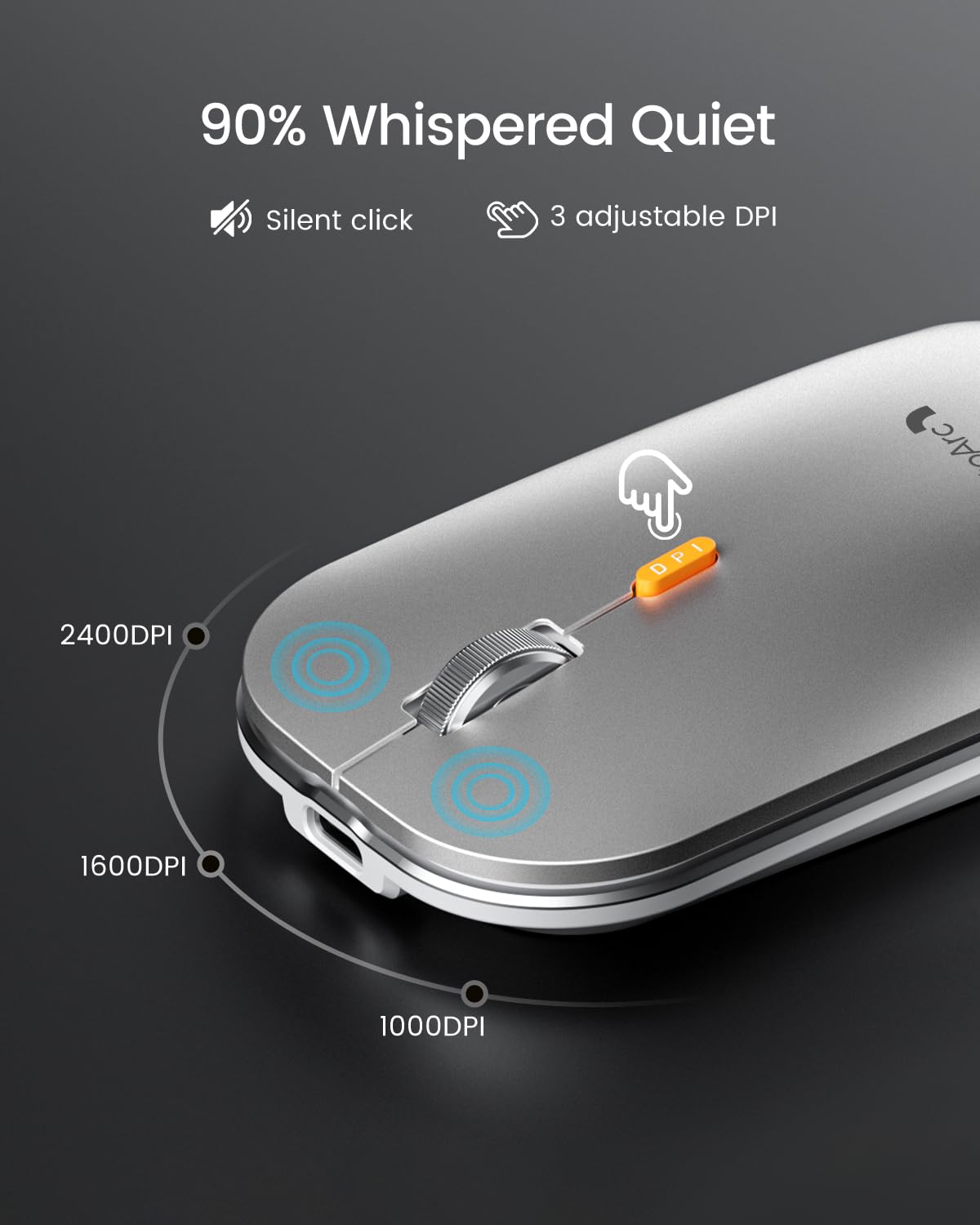 - Responsive Keys and Quiet Typing: This keyboard boasts a responsive scissor switch, allowing for efficient and hushed typing. The low-profile design and soft-touch keys elevate the typing experience to a new level of fingertip comfort and The mouse features three adjustable DPI levels of 1000/1600/2400, providing you with customizable sensitivity options