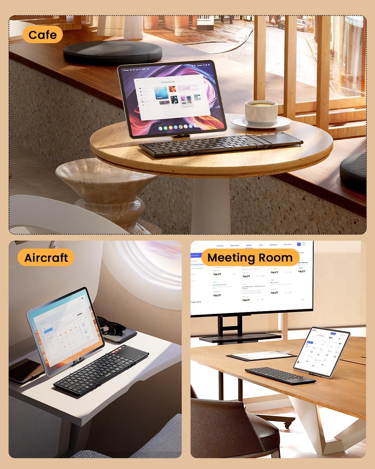 - Foldable Keyboard with Trackpad: This portable keyboard has a multi-touch trackpad that perfectly adapts to Windows or IOS system, and has various trackpad gestures, providing a comfortable usage experience while clicking, scrolling, and swiping through content effortlessly. Very convenient for your typing, watching, working and carrying without a mouse needed (Note: for iPad and iPhone users, please turn on the "AssistiveTouch" function on your device first. Some gesture functions may not work for reasons related to the application itself. Besides, you can set the scroll direction on on your device)