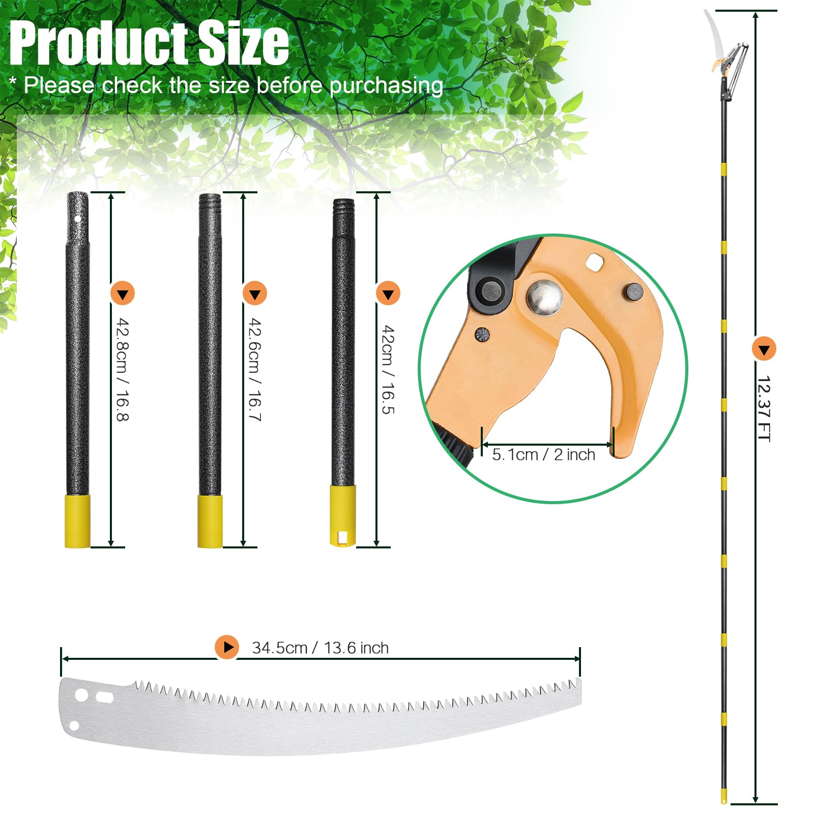 - Adjustable Length: Our pole saws for tree trimming can be selected by splicing 9 pole saws, from 7.3 feet to 12 feet, avoiding the danger of climbing altogether. You can adjust the length according to your needs, make your pruning easier
