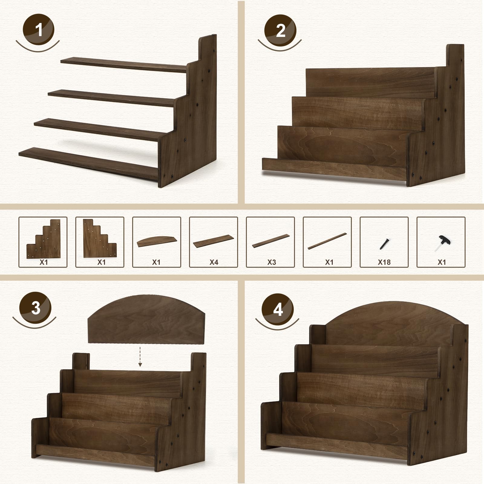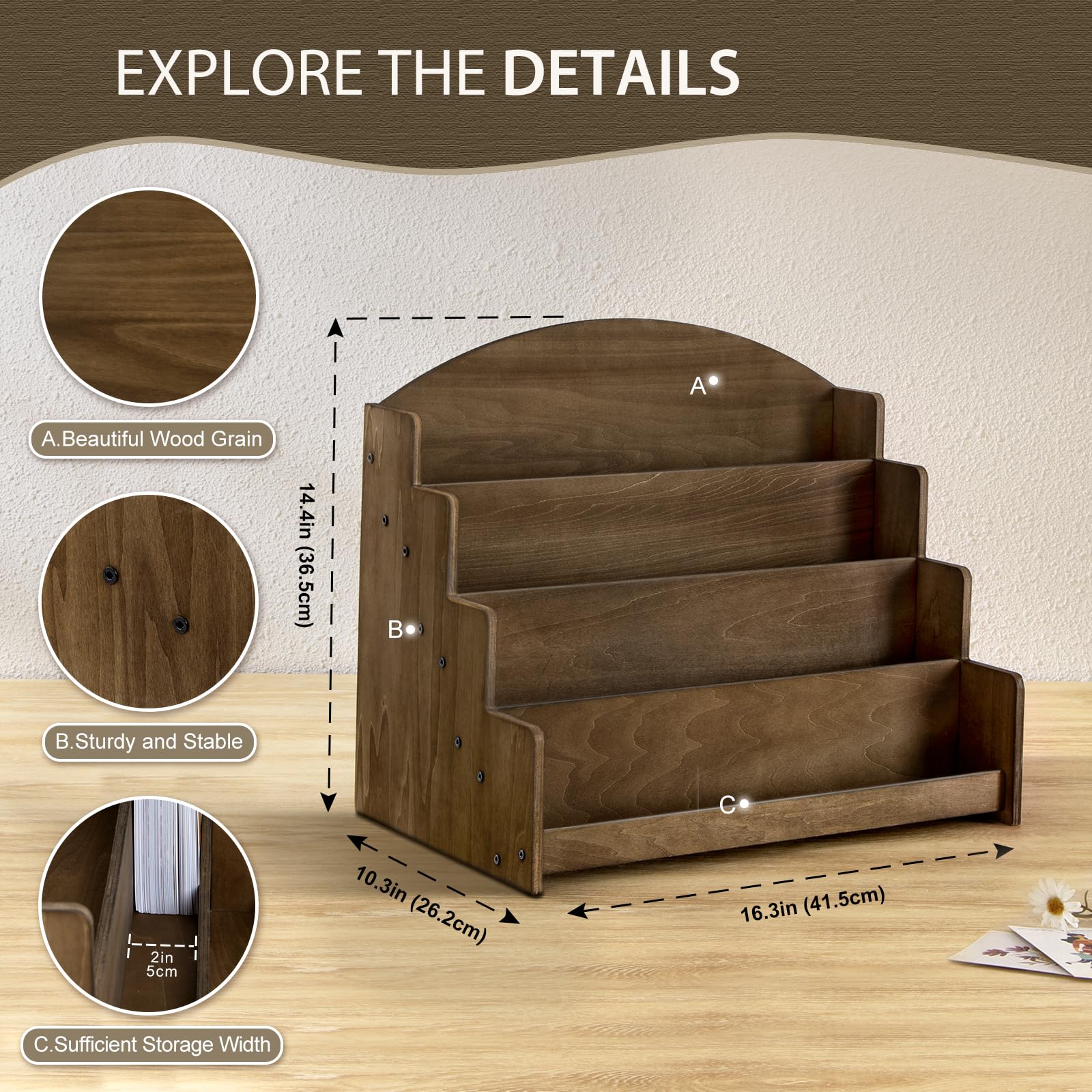 PUERSI Greeting Card Display Stand Holder - 4-Tier Wooden Organizer Rack for Retail Stores, Postcards, Stickers & Stationery Vendors, Brown