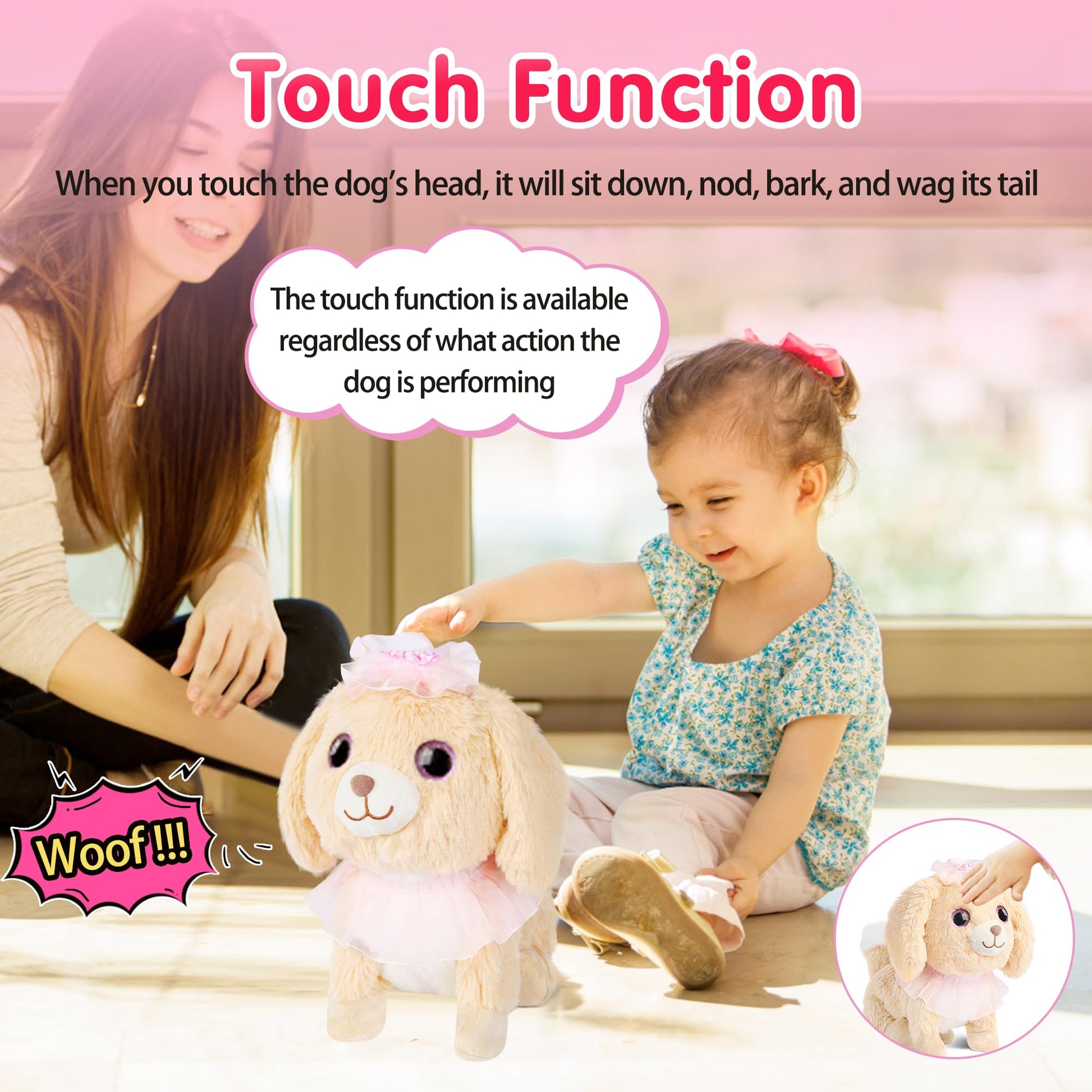 Puppy Toys for Girls - Golden Retriever Plush Dog Toy with Sitting, Walking, Barking, Tail Wagging & Recording, Touch & Voice Control Walking Dog Toys for Kids 3+ Years Old