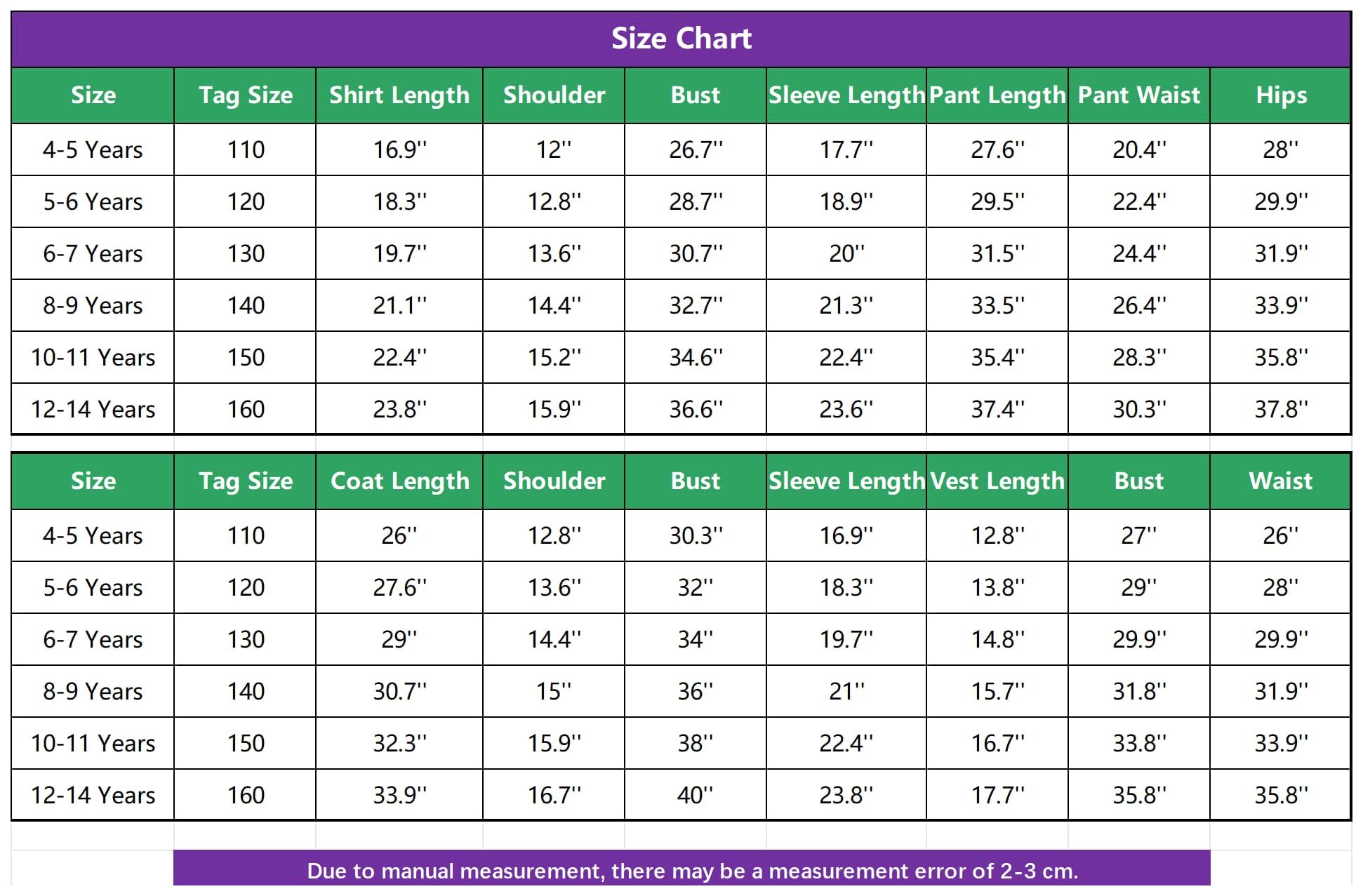 - 【Size】Kids purple clown costume has 5 sizes: S, M, L, XL, XXL. You can refer to the size chart according to the specific situation of your child and buy the size suitable for your child.