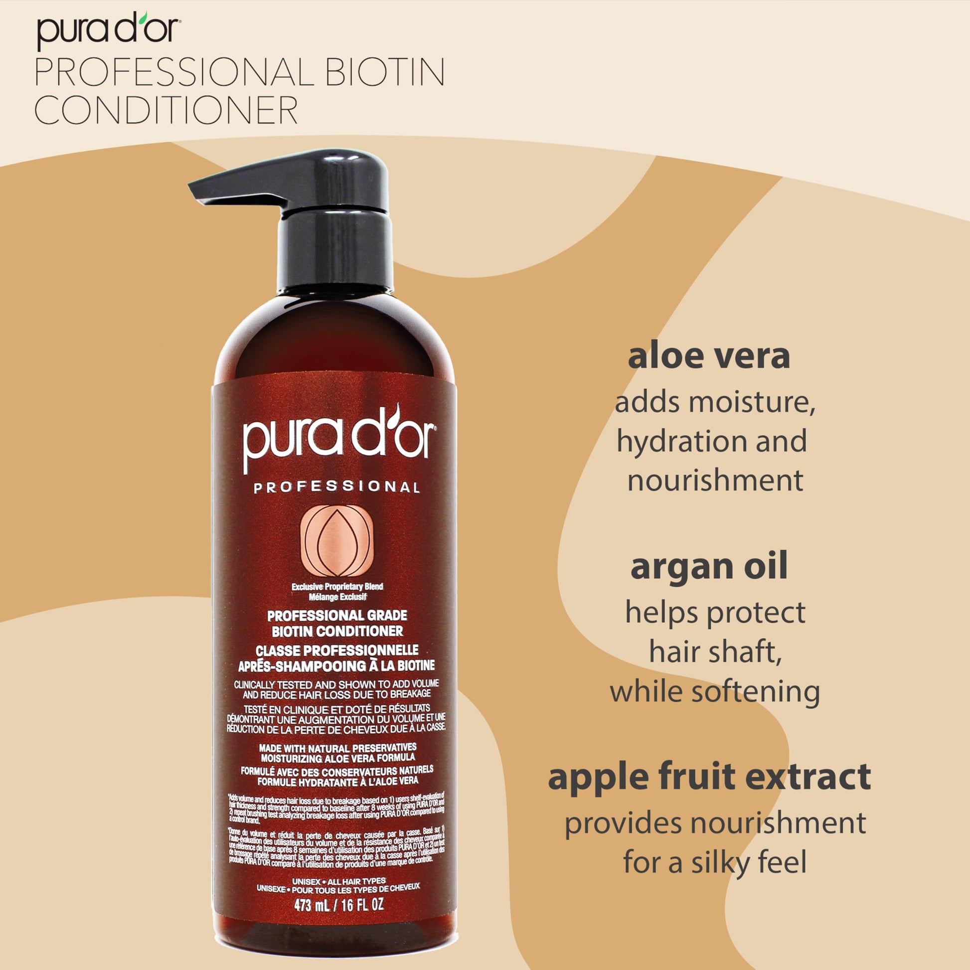 Details: PURA D'OR Clinically Formulated double concentrated shampoo and conditioner for thinning hair is clinically tested and designed to support hair strength and reduce breakage. It is one of PURA D’OR’s best-selling shampoo and conditioner sets because of its double-strength feature that increases volume and thickness of your hair, keeping it moisturized and tangle-free all day long. Our Clinically Formulated shampoo and conditioner include 17 key ingredients in the shampoo plant-based preservative system, each with twice the concentration to support and ensure moisturized hair from roots to tips without any signs of distress, breakage, or leaving it flat. Ingredients such as Saw Palmetto, Nettle extracts, Biotin, Fo Ti, Red Korean Seaweed, Pygeum Bark Extract, and other exotic herbs are part of the proprietary blend. Even with the double concentration formula, our sulfate-free shampoo and conditioner is still safe for our daily routine use on any hair types including natural hair, colored treated or dry and damaged hair, for both men and women. It is free from harsh chemicals and paraben-free. It is hypoallergenic, vegan, environmentally responsible, and cruelty-free.
