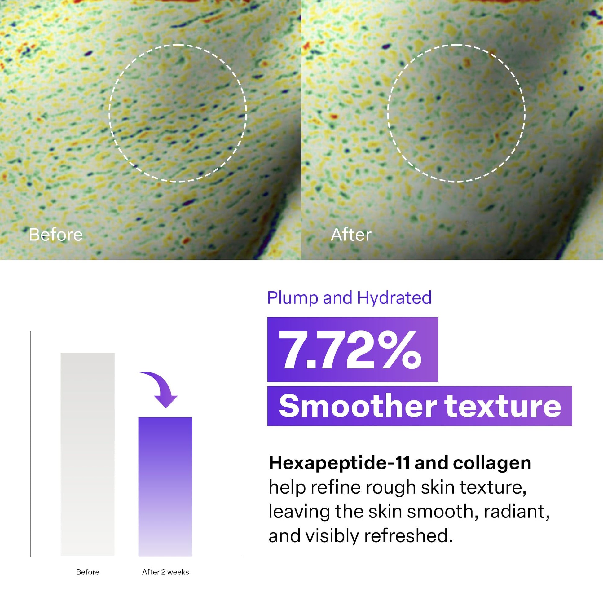 • Hexapeptide‑11 & Collagen Blend: A potent duo that helps refine texture, lessen the look of fine lines, and impart a youthful firmness—without heaviness or irritating side effects.
