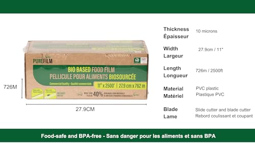 PUREFILM 11in x2500ft Bio Based Food Film, Food Wrap with Blade and Slide Cutter