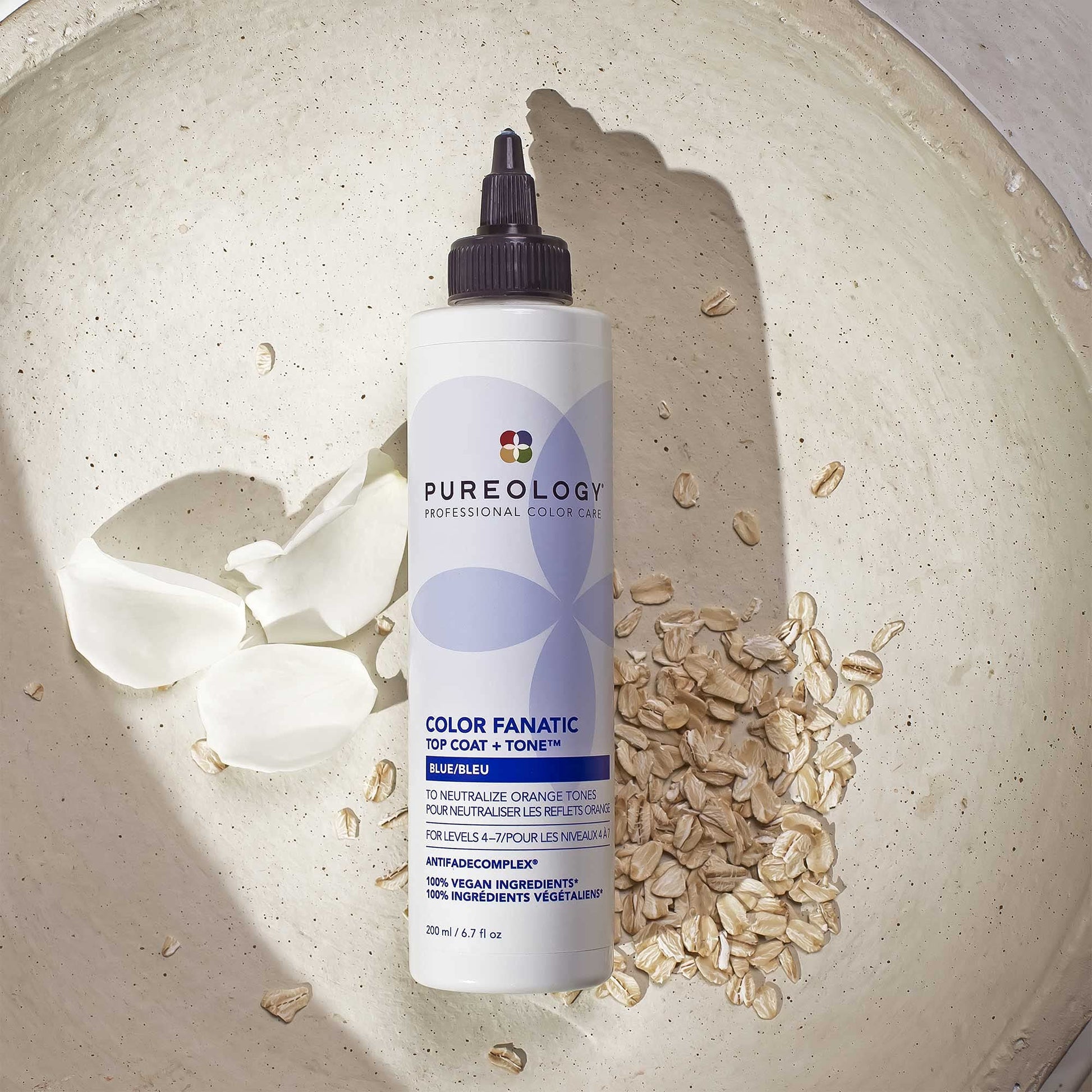Pureology Color Fanatic Top Coat + Tone Blue High-Gloss Hair Toner | Toning Hair Gloss for Color-Treated Hair | Glaze For Dark Blonde to Brunette Hair | 6.7 Fl Oz