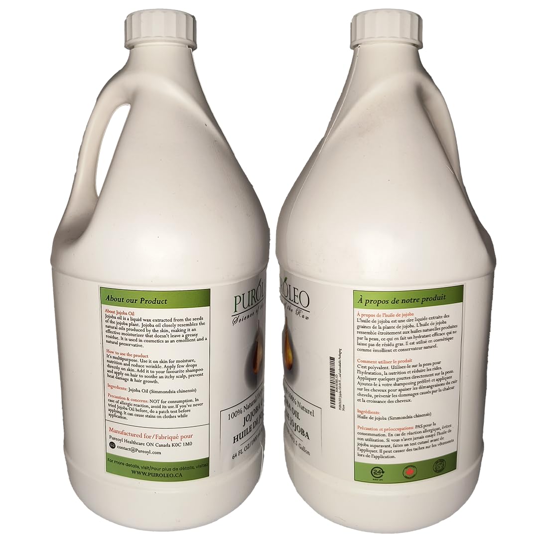 PUROLEO Jojoba Oil 64 Fl Oz/1900 ML (Packed In Canada) 100% Pure and Natural for Hair Oil, beard oil , Cuticle Oil, baby oil & Face Oil | |Personal Beauty Pack Easy to carry | Premium Leakproof unbreakable Packaging