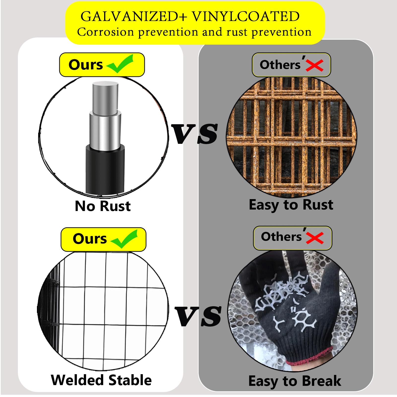 - Premium Quality】The welded wire garden fence is made of No. 16 heavy-duty galvanized steel wire and provides double coating to maximize rust resistance and service life. Vinyl coating provides additional protection.