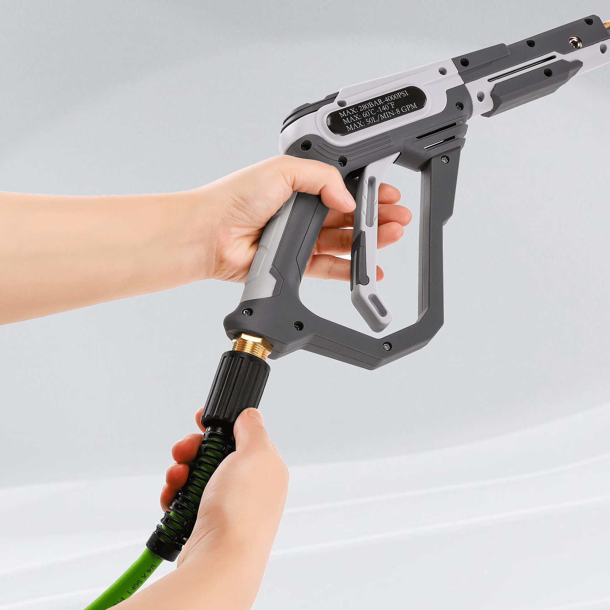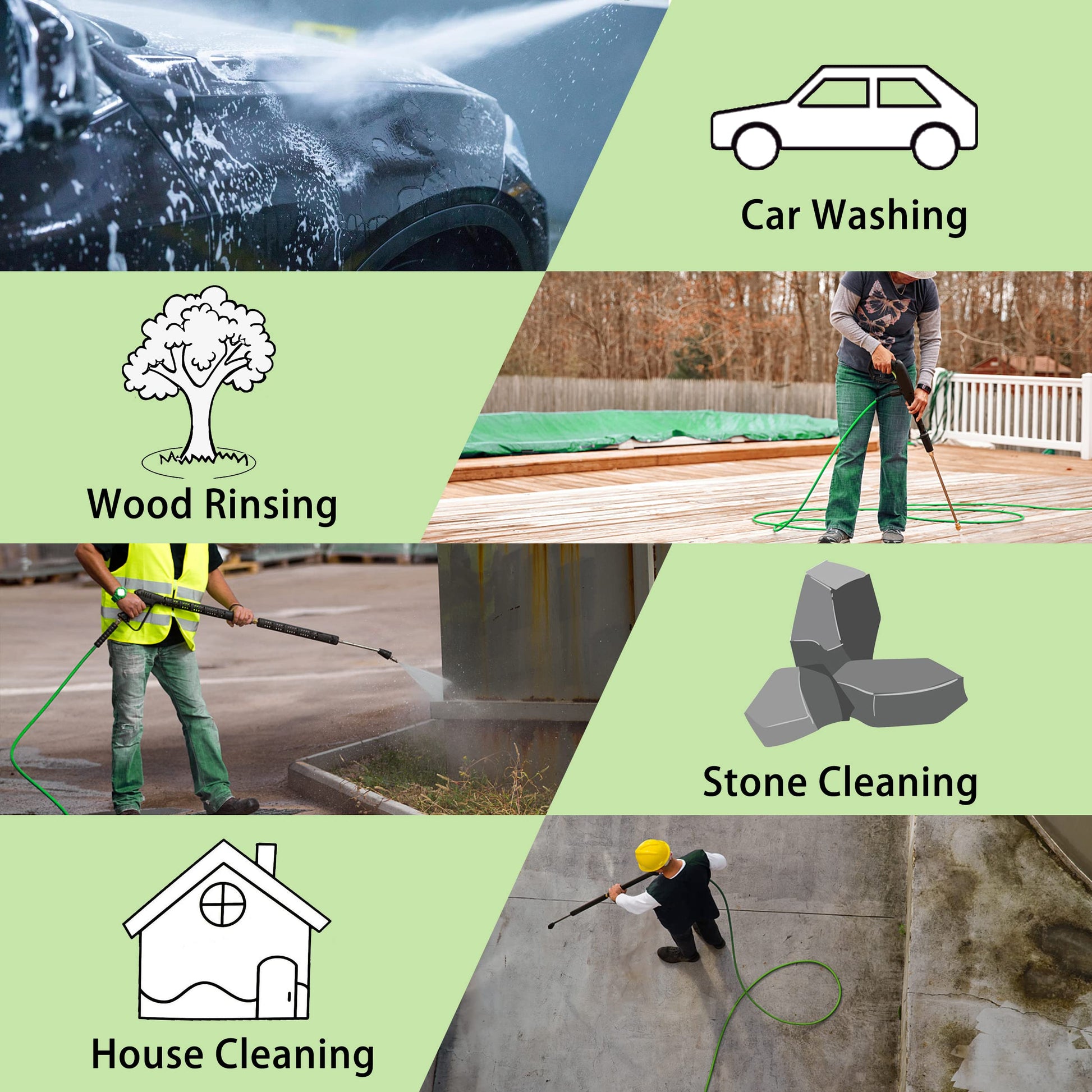 - LIGHT WEIGHT — The apple-green hose for pressure washer is made of lightweight polyester braid, compared with traditional rubber-made hose, it is at least 50% lighter, make it more convenient to carry when outer-working.