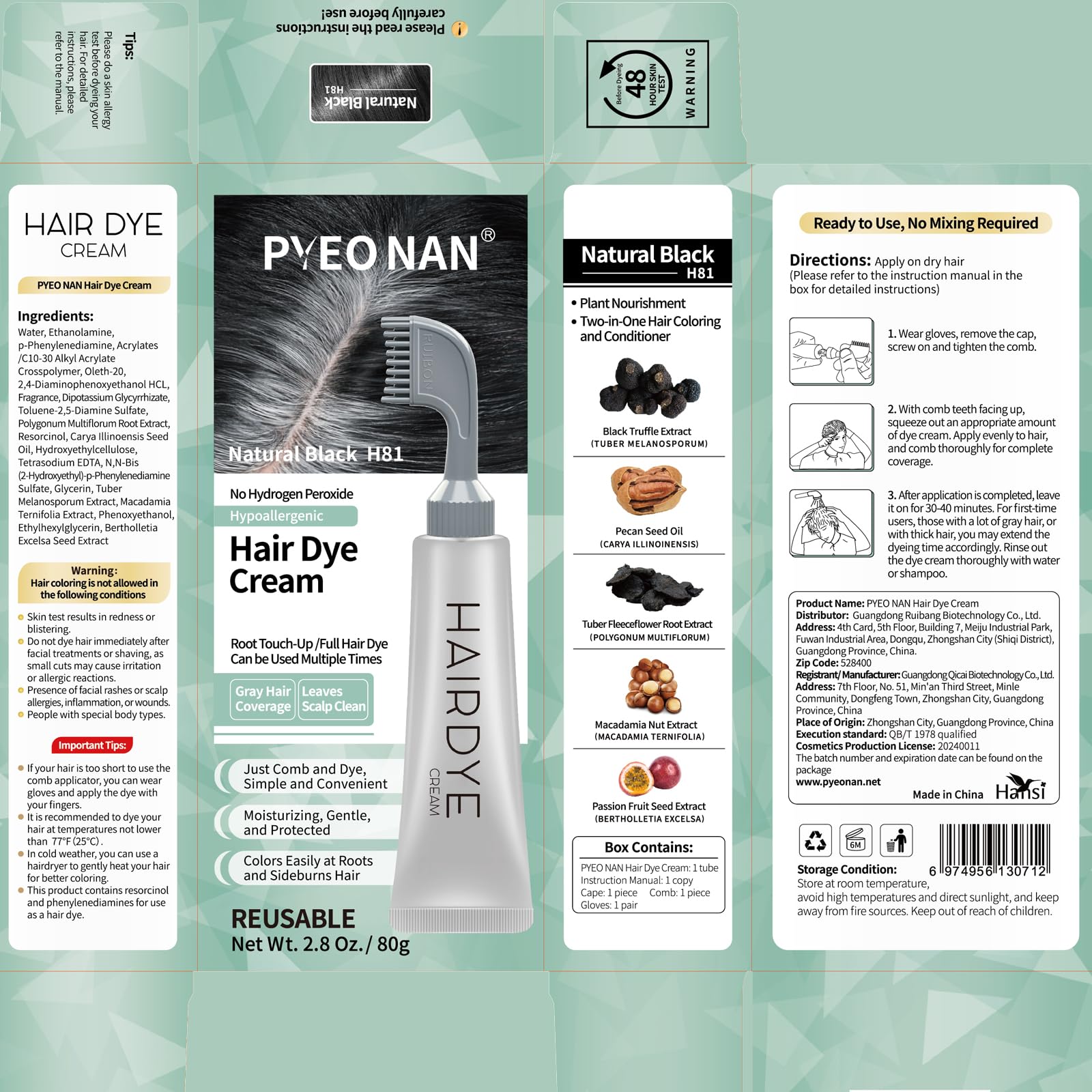 PYEONAN Hypoallergenic Hair Dye Cream,Natural Plant Extract Without Bleaching, Easy Comb to Cover Gray Coverage Ammonia Free All Hair Types 2.8Oz. /80g (Natural Black, Pack of 1)