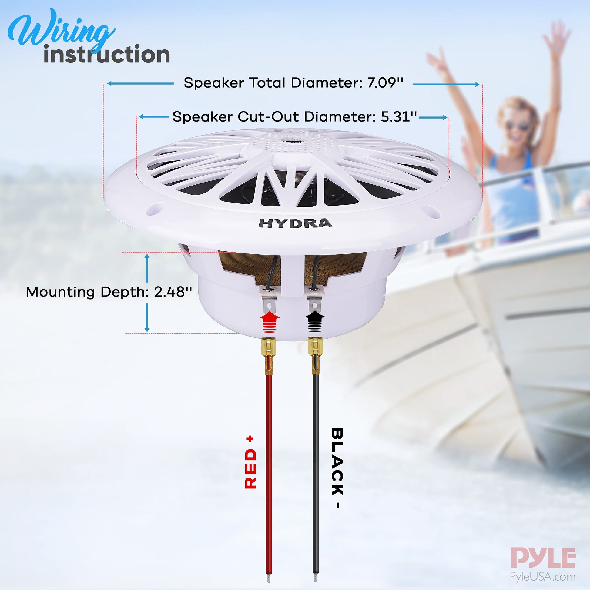 - LOW PROFILE DESIGN: Constructed with a low profile design with a sensitivity of 90db and 1” Aluminum voice coil that can be easily used on boats, marine watercraft and other vehicles. The classic white look also gives extra style to the vehicle