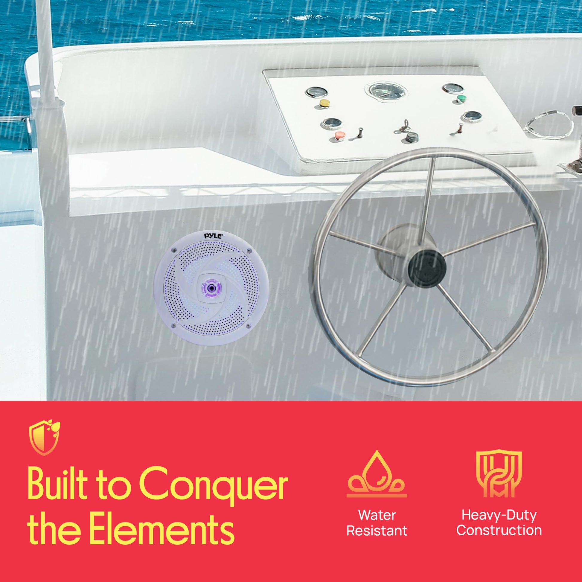 Pyle Marine Speakers - 4 Inch 2 Way Waterproof and Weather Resistant Outdoor Audio Stereo Sound System with LED Lights, 100 Watt Power and Low Profile Slim Style - 1 Pair - PLMRS43WL (White)