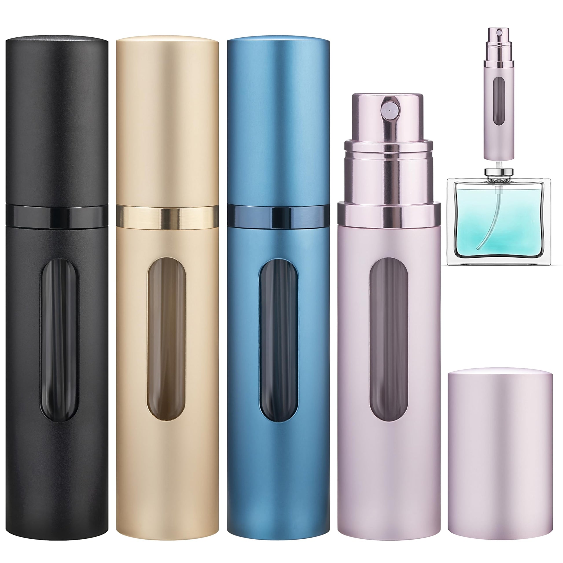 Qavhun Travel Perfume Atomizer - 4-Pack 5ml Leakproof Refillable Bottle, Fragrance Spray (Black, Gold, Blue, Pink)