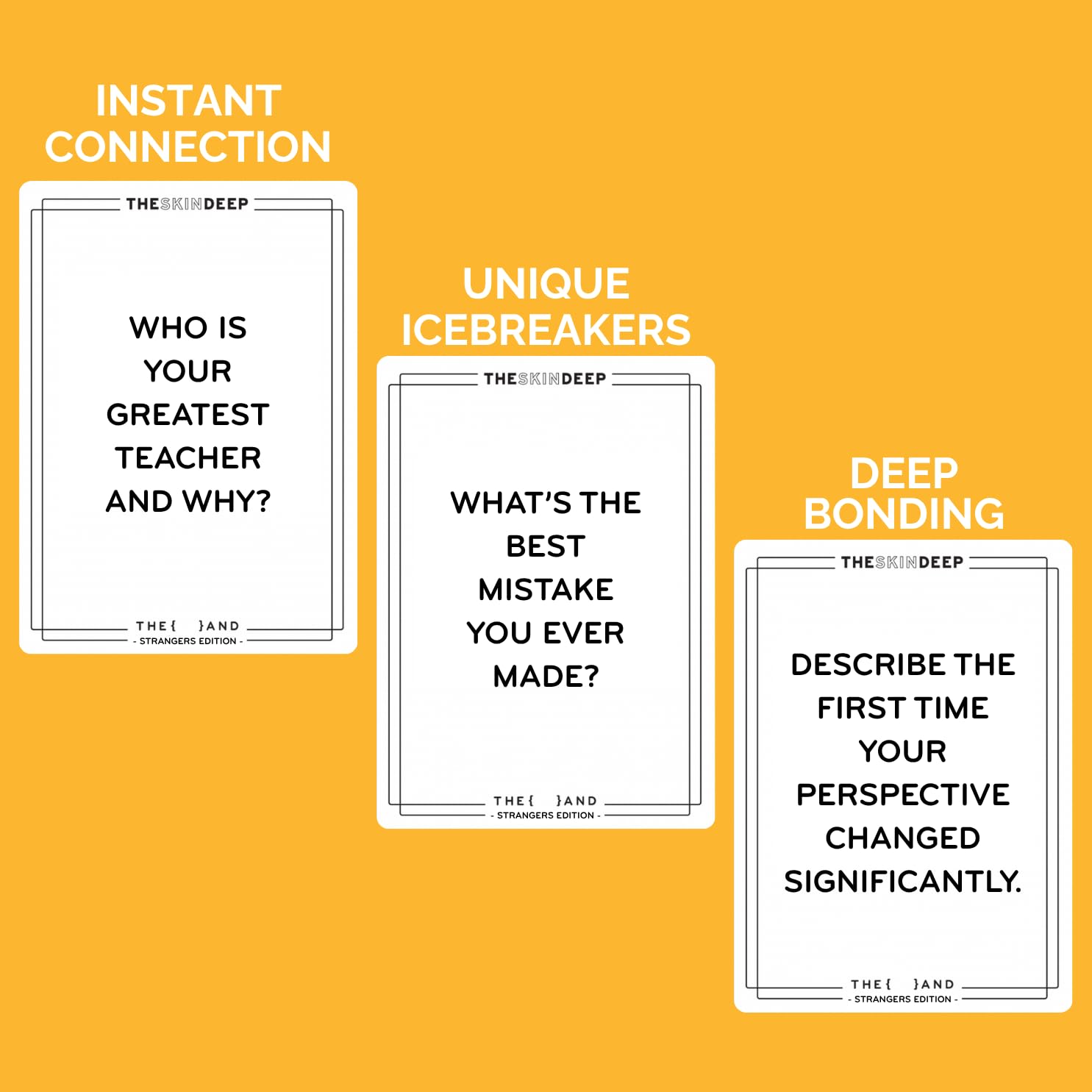 (THE AND) Strangers Edition - Conversation Starter Card Game - Fun Getting to Know You Game - Ice Breakers to Reduce The Space Between You and a Stranger - Questions to Make a Friend by The Skin Deep